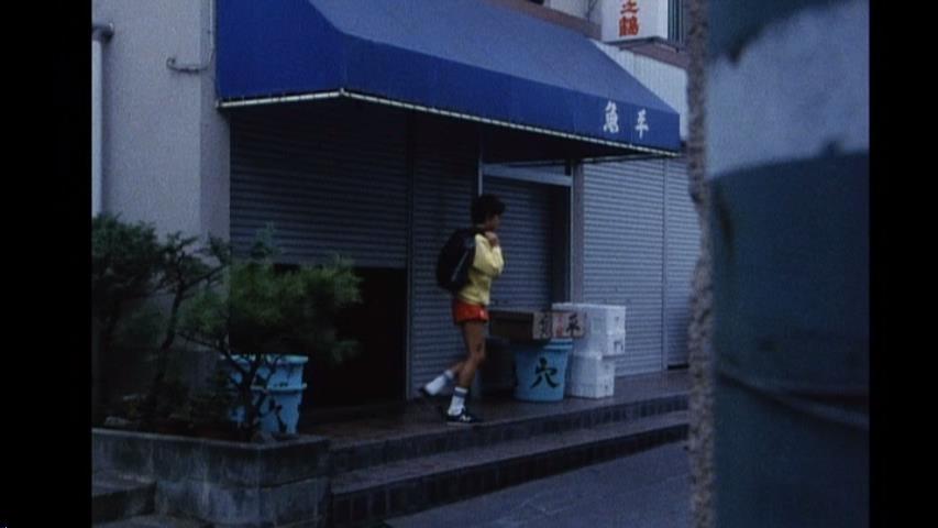 自宅から紙袋を持って出てきた亜希。不審に思った松元(小西博之)と田島(四方堂亘)が後をつけるところ。かなたに東急のたまプラーザ駅前店の看板が見える。石川町の住宅街で、やはりよくロケ地になる新石川公園のあたり。